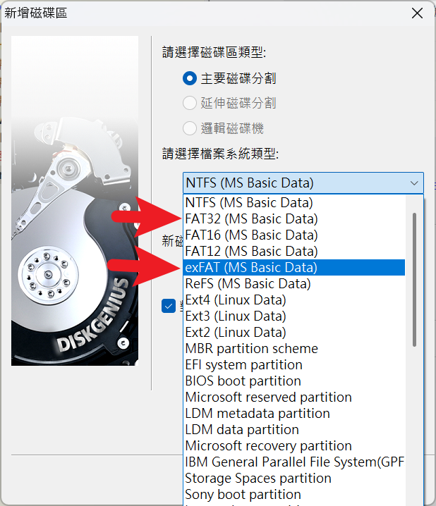 - 選擇檔案系統,一般情況下推薦 ExFAT,可以相容於各大作業系統,若無法使用再嘗試 FAT32。