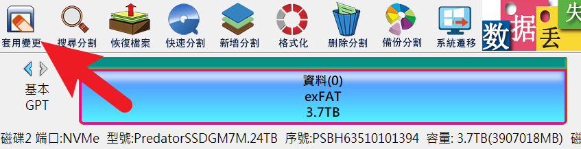【說明】清除硬碟上的所有磁碟區,重新格式化為通用的 ExFAT 格式。