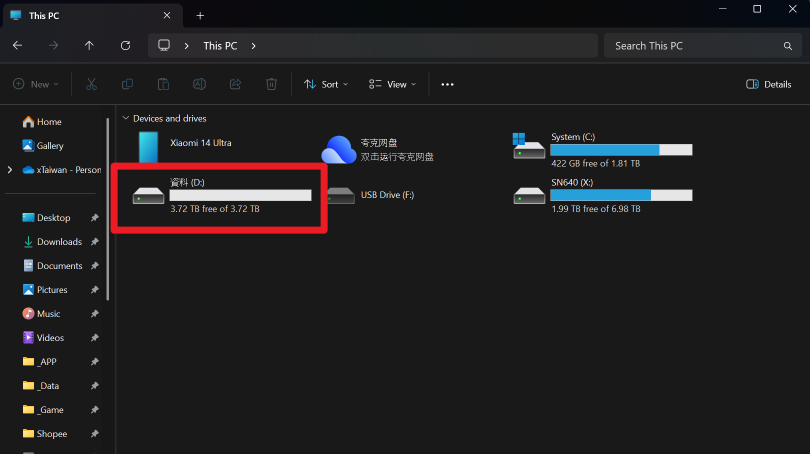 - 在檔案總管中,可看到格式化完成的磁碟。
