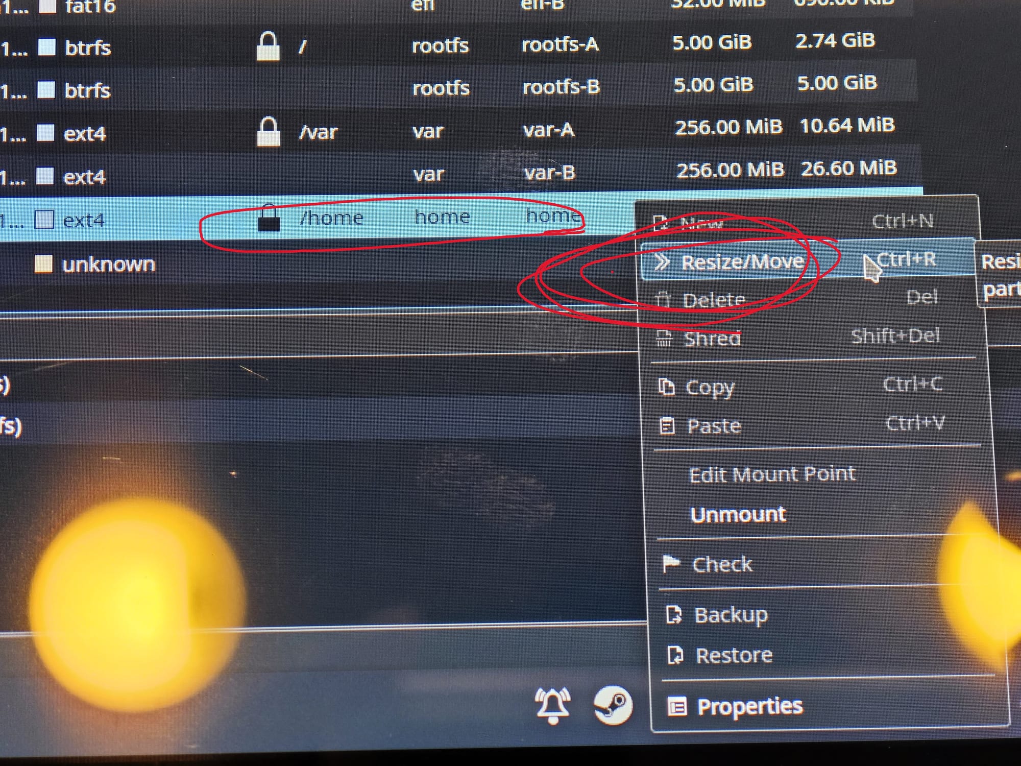 教學:Steam Deck 雙系統 改回單 SteamOS 系統 使用教學與說明 guide • Feb 22, 2024 開機,進 SteamOS 桌面模式開啟 KDE Partition manager找到 /home 以下的所有分區,右鍵刪除右鍵 /home 分區,Resize/Move拉上面這條,拉到最右邊,點OK最後點左上角 Apply,耐心等他跑完。跑完之後就移除 Windows 的分區了,至於啟動引導部分,需要自行手動解除安裝(取決於一開始的安裝方法)。 標籤 使用教學與說明 guide xTaiwanPingLord (店長) 向您推薦 使用教學與說明 guide 嘗試解決 DP MST Hub 無法開啟延伸螢幕的問題 a year ago • 閱讀預計需要2分鐘 使用教學與說明 guide 教學:調整 AMD 處理器筆電的內顯 VRAM 顯示記憶體 2 years ago • 閱讀預計需要1分鐘 使用教學與說明 guide 教學:將 Windows 系統複製/遷移至新的硬碟 (DiskGenius) 2 years ago • 閱讀預計需要2分鐘